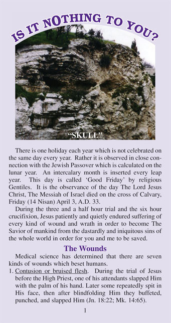 About This Gospel Tract: John 3:29 "...Behold the Lamb of God, which taketh away the sin of the world" A TRACT FOR EVANGELISM ESPECIALLY IN PASSOVER SEASON AND ALSO THROUGHOUT THE YEAR FOR BELIEVERS' MEDITATION IN PREPARATION FOR OBSERVANCE OF THE LORD'S SUPPER (COMMUNION)